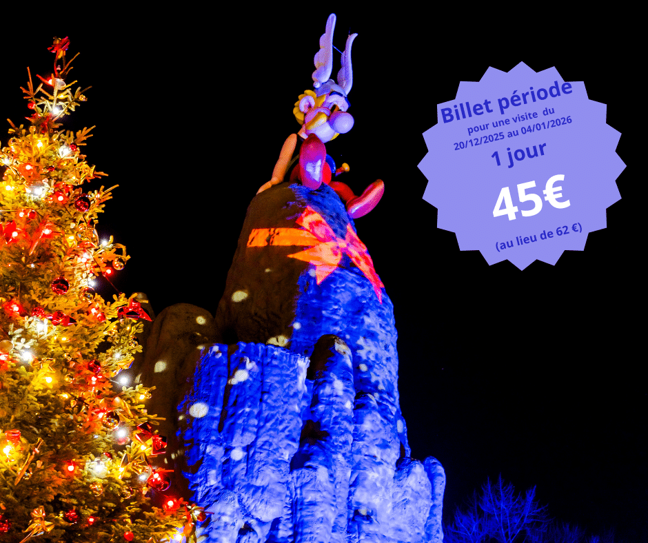 e-billet1 jourAdulte - Enfant (à partir de 3 ans)Valable 1 jour du 20 décembre 2025 au 4 janvier 2026. Selon calendrier d'ouverture Gratuit pour les enfants de moins de 3 ans Fin des ventes le 17 décembre 2025 (pour info plein tarif enfant de 3 à 11 ans : 57 € / adulte 65 €) Le prix initial était : 65,00 €.Le prix actuel est : 45,00 €.